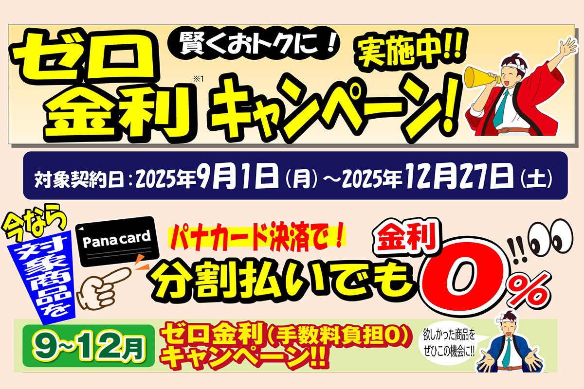 【賢くお得に!!】ゼロ金利キャンペーン実施中(2025年9月~12月)