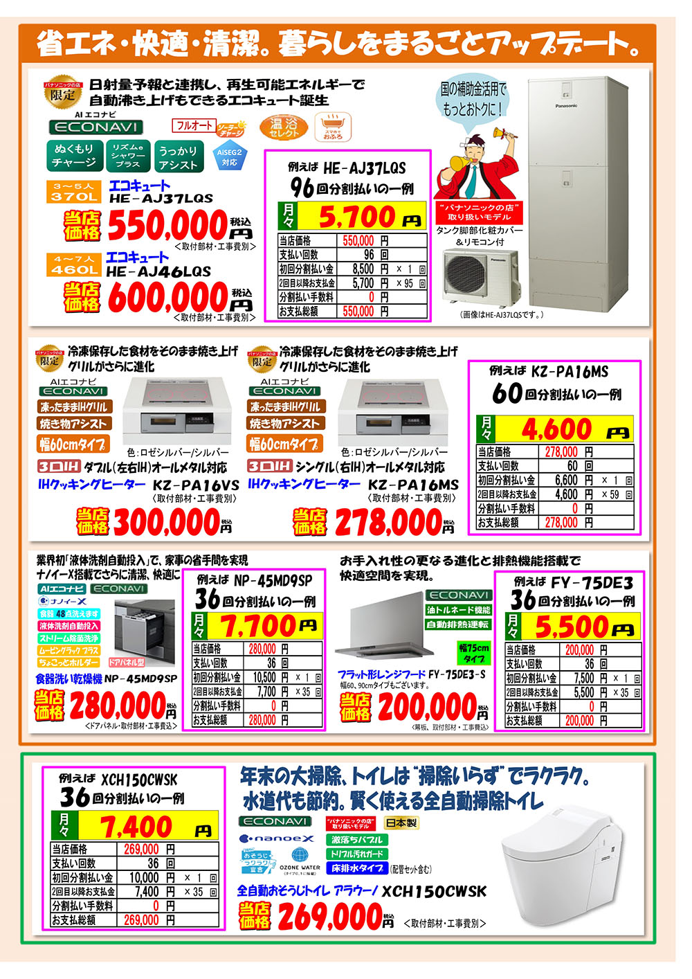 【賢くお得に!!】ゼロ金利キャンペーン実施中(2025年9月~12月) 2025 10/15 お知らせ 2025年10月15日 【期間限定】ゼロ金利キャンペーン実地中 金利ゼロキャンペーンチラシをダウンロードする(PDF) 掲載商品・キャンペーンに関するお問合せはこちら お知らせ よかったらシェアしてね! URLをコピーしました! URLをコピーしました! 寒い・結露・電気代…冬の困りごとを解消する内窓リフォーム 関連記事 寒い・結露・電気代…冬の困りごとを解消する内窓リフォーム 2025年9月8日 【LIXILおすすめセレクション】キャンペーン実施中(~2026年3月31日まで) 2025年8月25日 【電気代の不安、これからもっと増える前に】家庭用蓄電池という選択肢|自宅で“電気をためる”新しい暮らしへ 2025年8月8日 LIXIL神戸ショールームでリフォーム体感イベント|9月6日(土)・7日(日) 開催! 2025年7月30日 【2025年 夏季休業のお知らせ】 2025年7月23日 【夏の電気代をグッと抑える】冷蔵庫の節電テクニックと買い替え時のポイント 2025年7月23日 TOTOのシステムバスが、今だけ無料でワンランクアップ!― 2025年7月1日〜9月30日出荷分限定 ― 2025年7月10日 【令和7年度版】兵庫県の冷蔵庫補助金制度|省エネ冷蔵庫に買い替えて1万円もらえる! 2025年7月10日